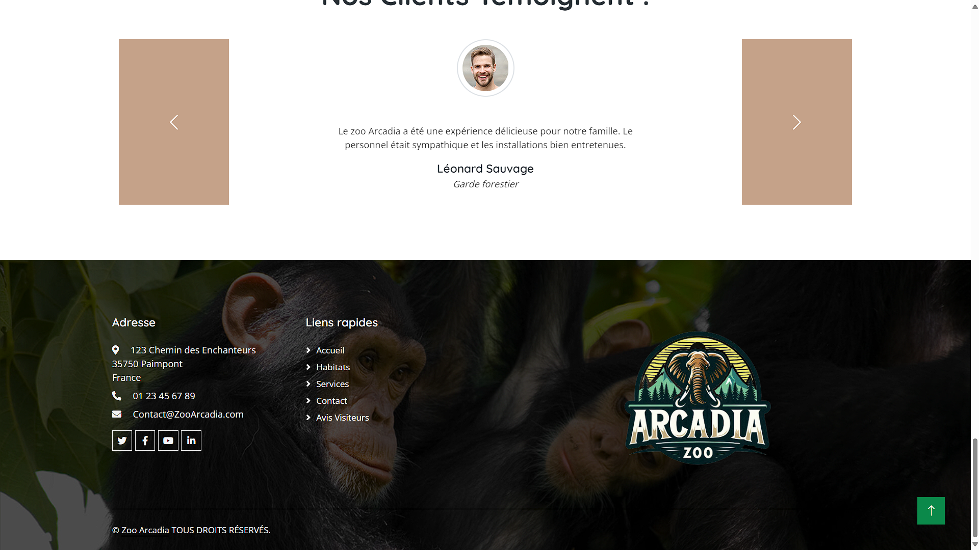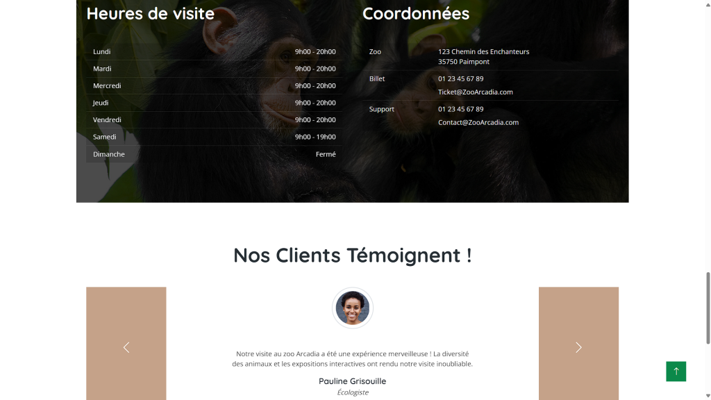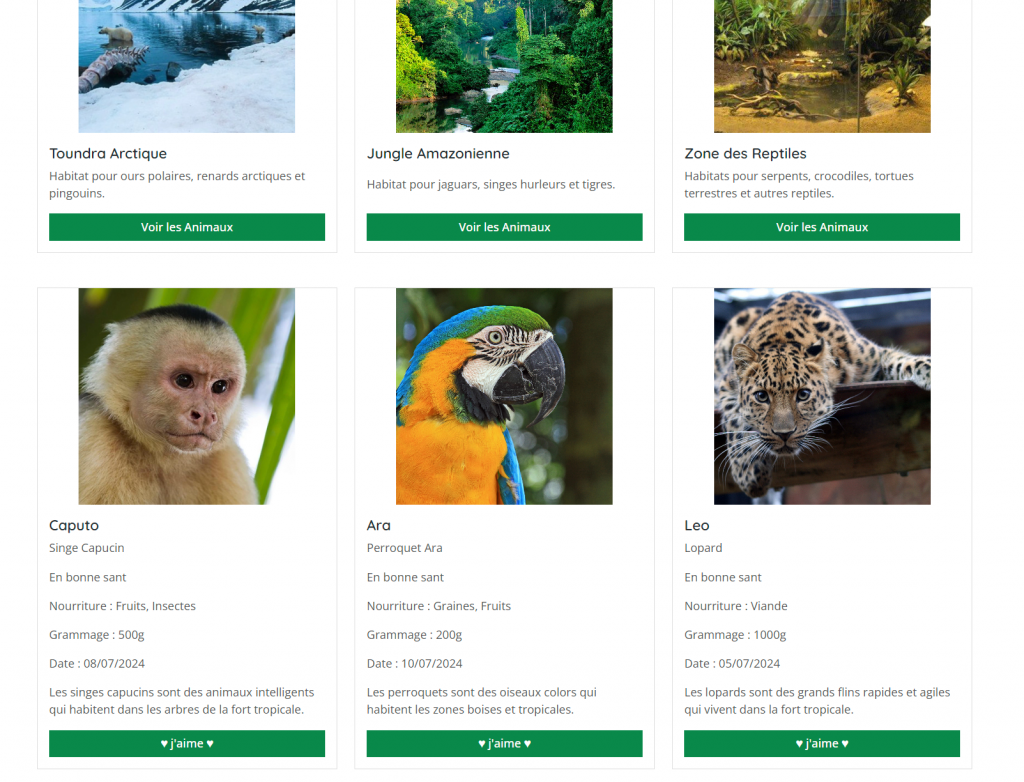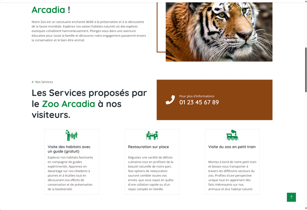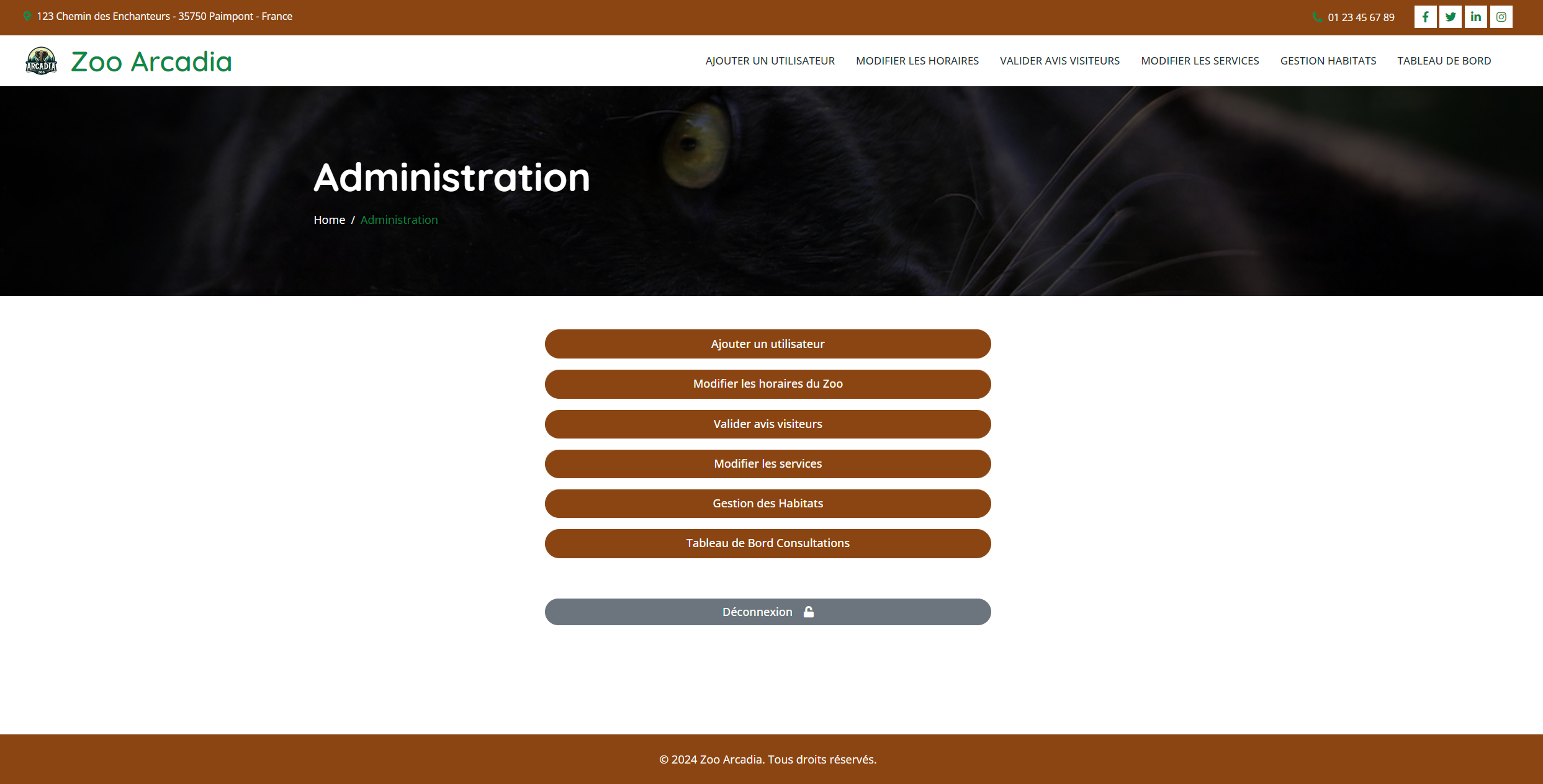 Site fictif pour le Zoo Arcadia en Bretagne. Le site inclut un systÚme sécurisé de connexion pour les comptes administrateurs. Les employés peuvent accéder à différentes sections du site en fonction de leur niveau de sécurité pour modifier diverses parties du site (par exemple, gestion des employés, suivi vétérinaire, etc.). Les visiteurs, quant à eux, peuvent explorer les habitats et les différents animaux résidant au zoo, ainsi que « liker » leur animal préféré.