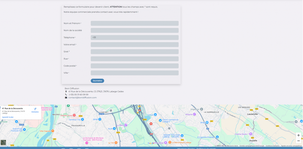 🟣 Formulaire de contact → PossibilitĂ© pour les clients de demander des devis ou des renseignements.
